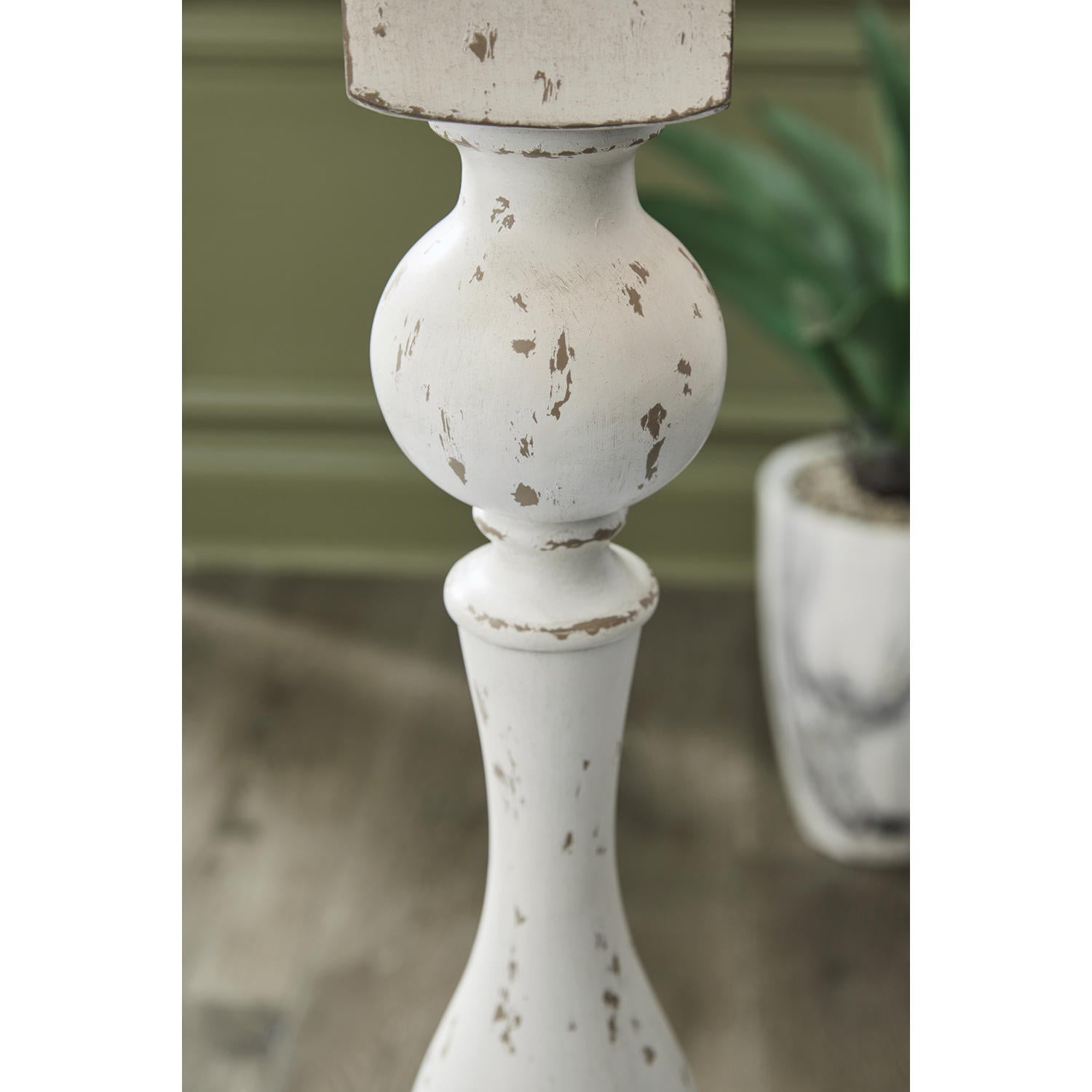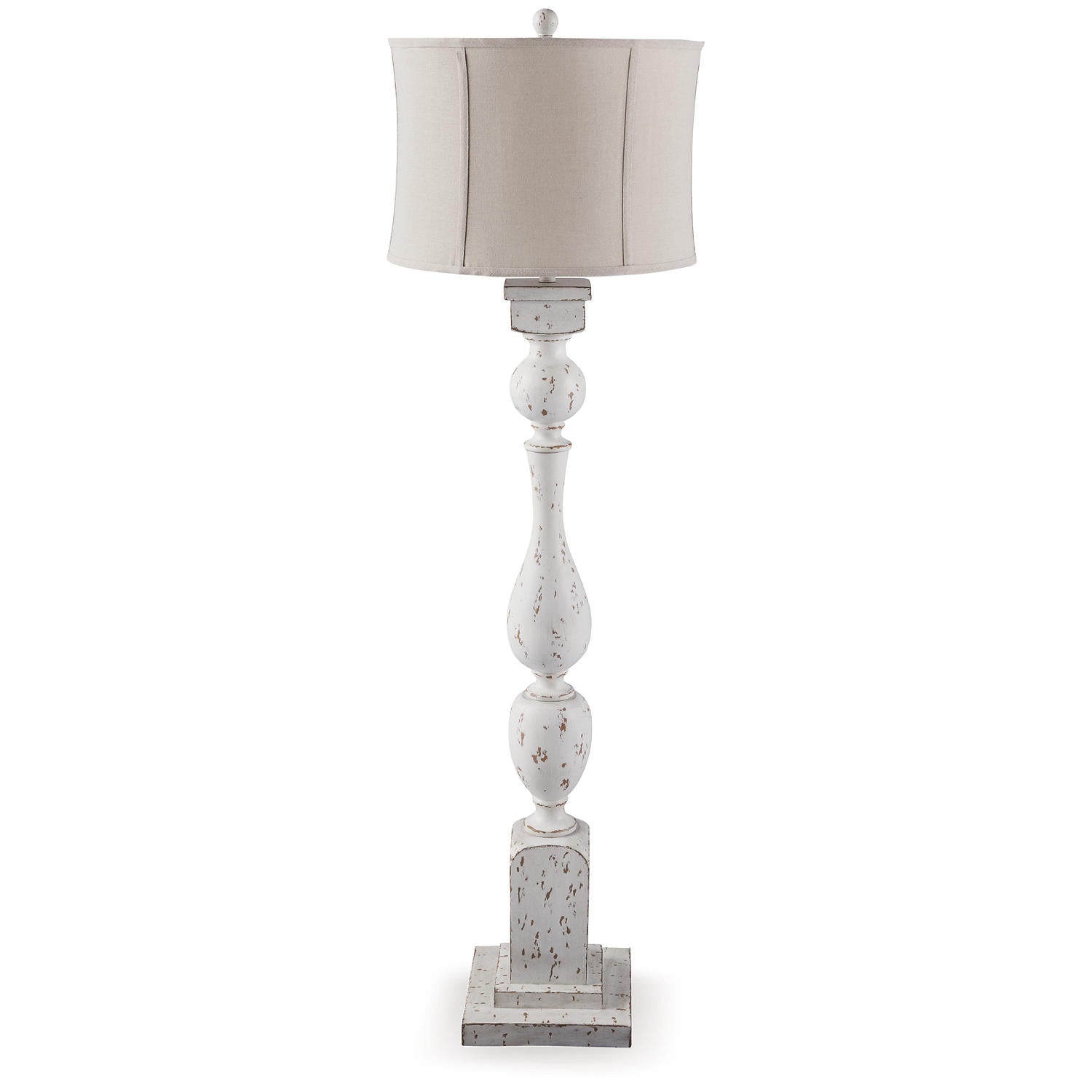 This floor lamp takes a classic approach to tasteful lighting. Its detailed base ushers an air of elegance into your space with a graceful turn design. Outfitted with an antiqued white finish, it's right at home in traditional spaces. Pair with the matching table lamp (sold separately) for double the style.