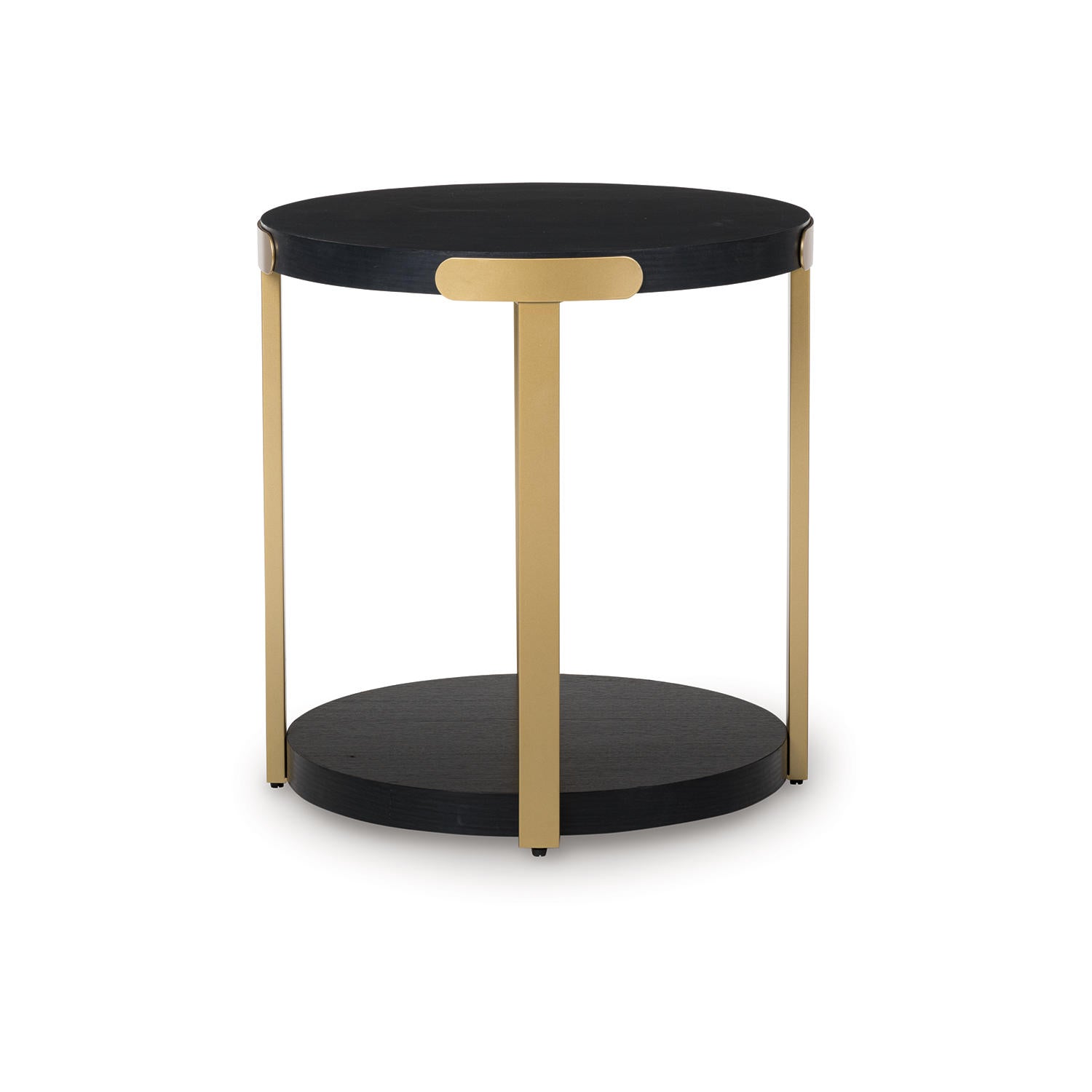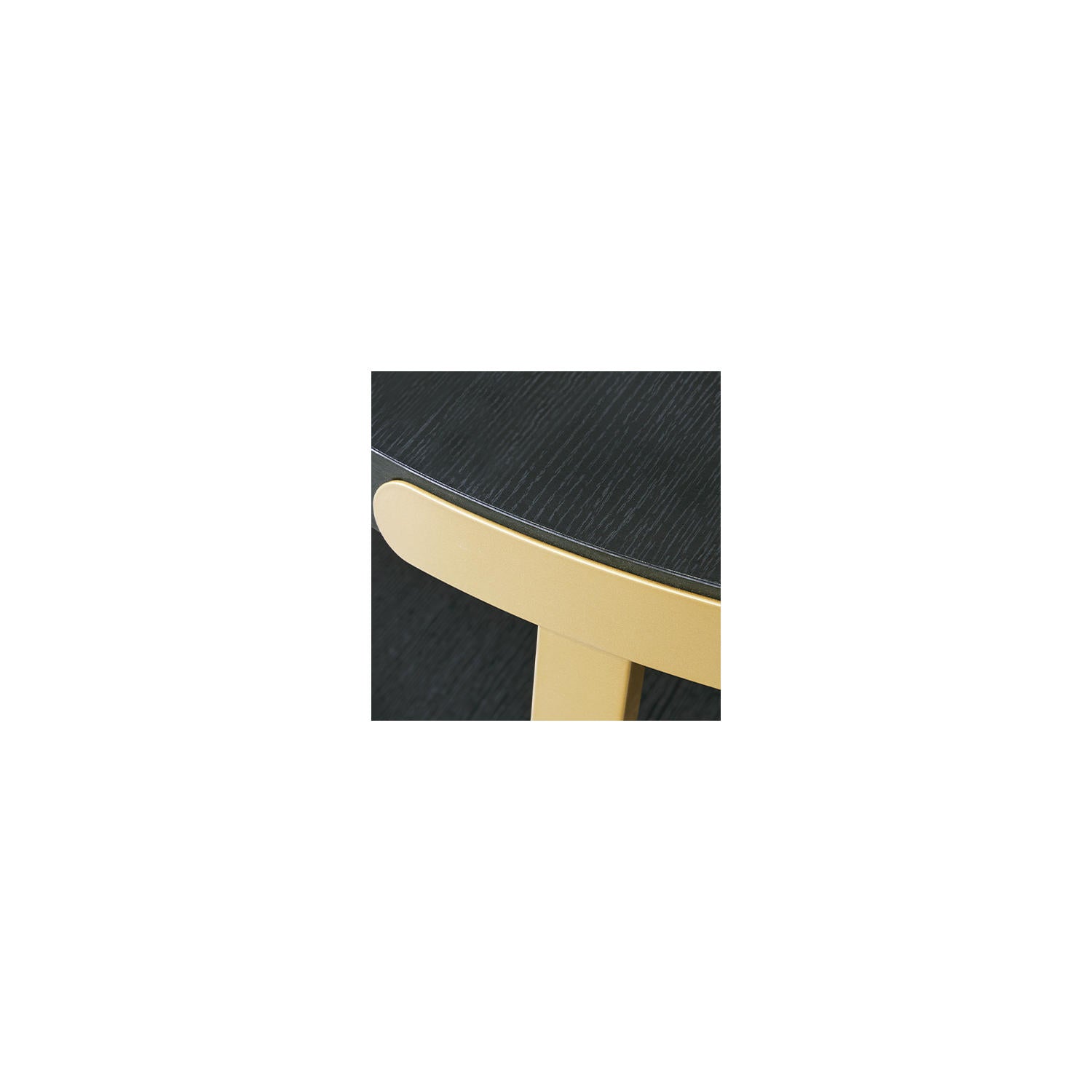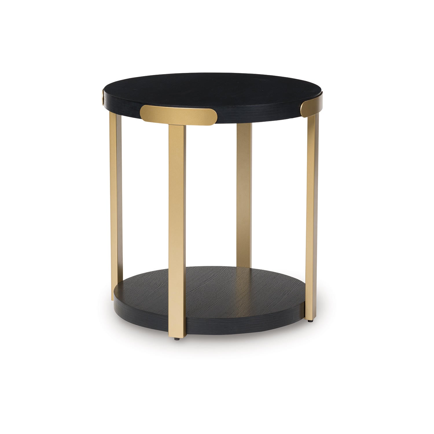 Reflect your cool, contemporary eye for design with this table set. Pairing a gleaming goldtone finish and black wood grain pattern, it crafts a luxe look for your living room. The lower shelves are well-suited for displaying your favorite decor, while casters on the coffee table offer added flexibility.