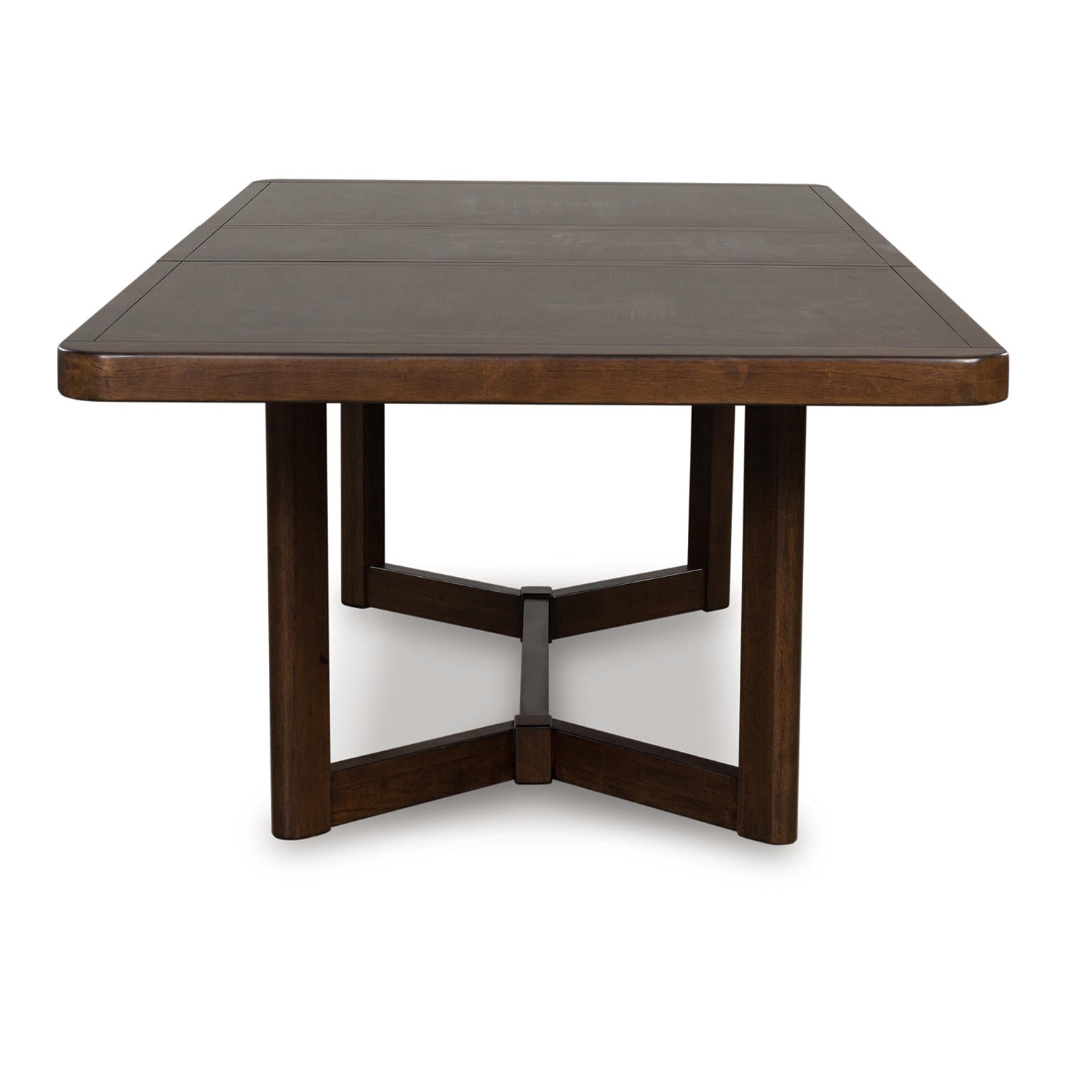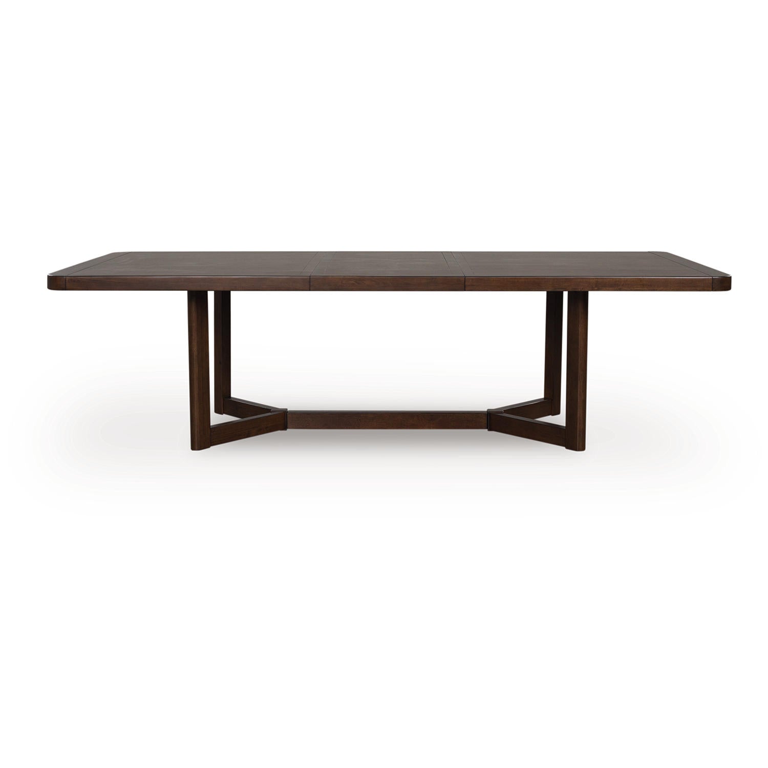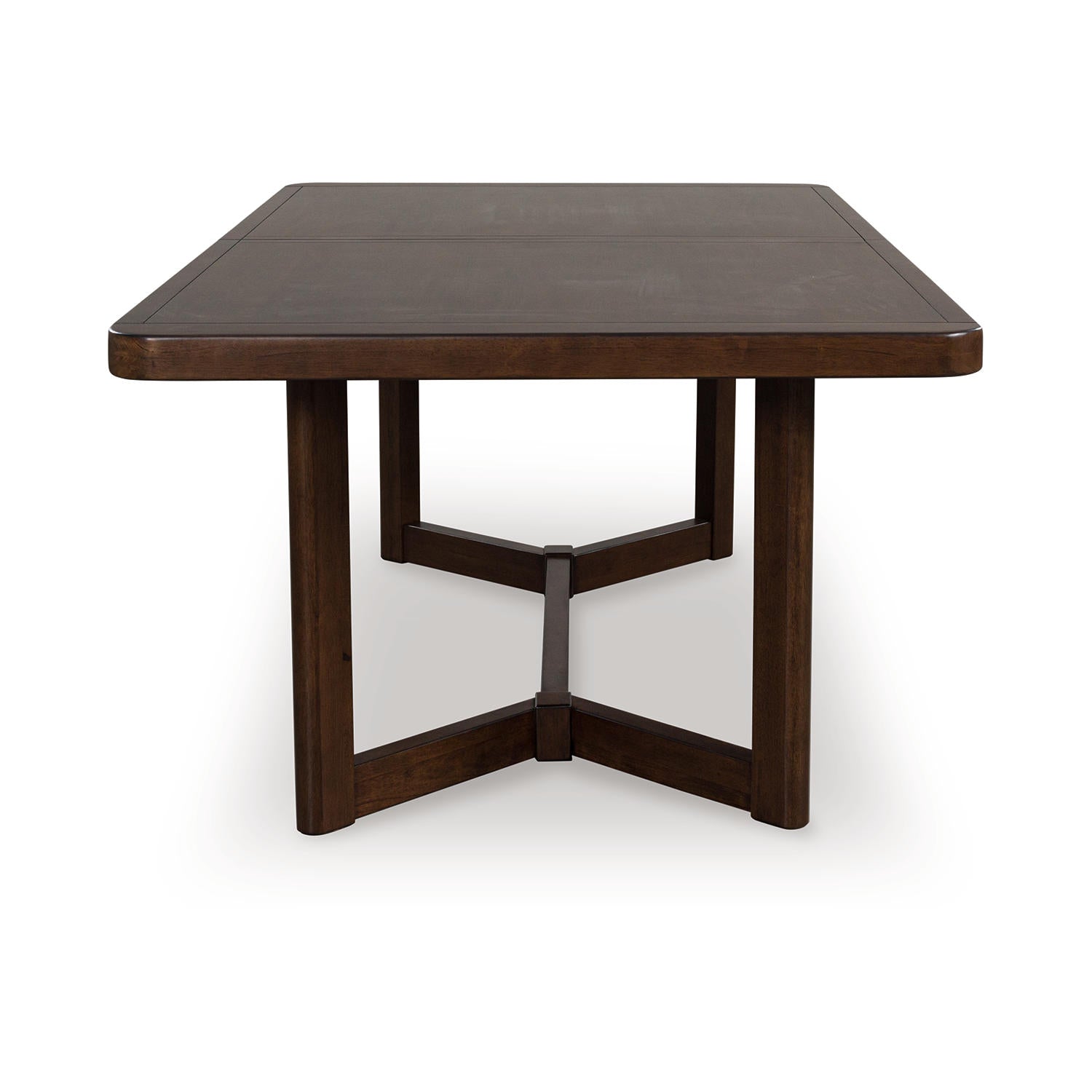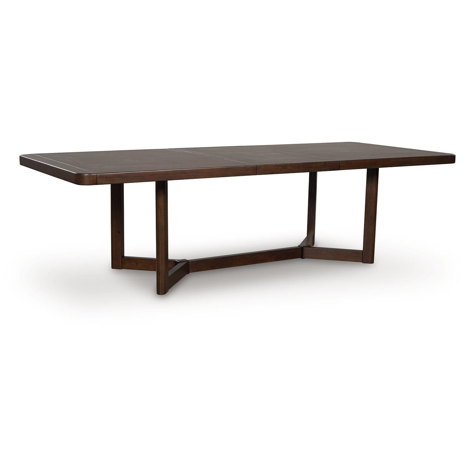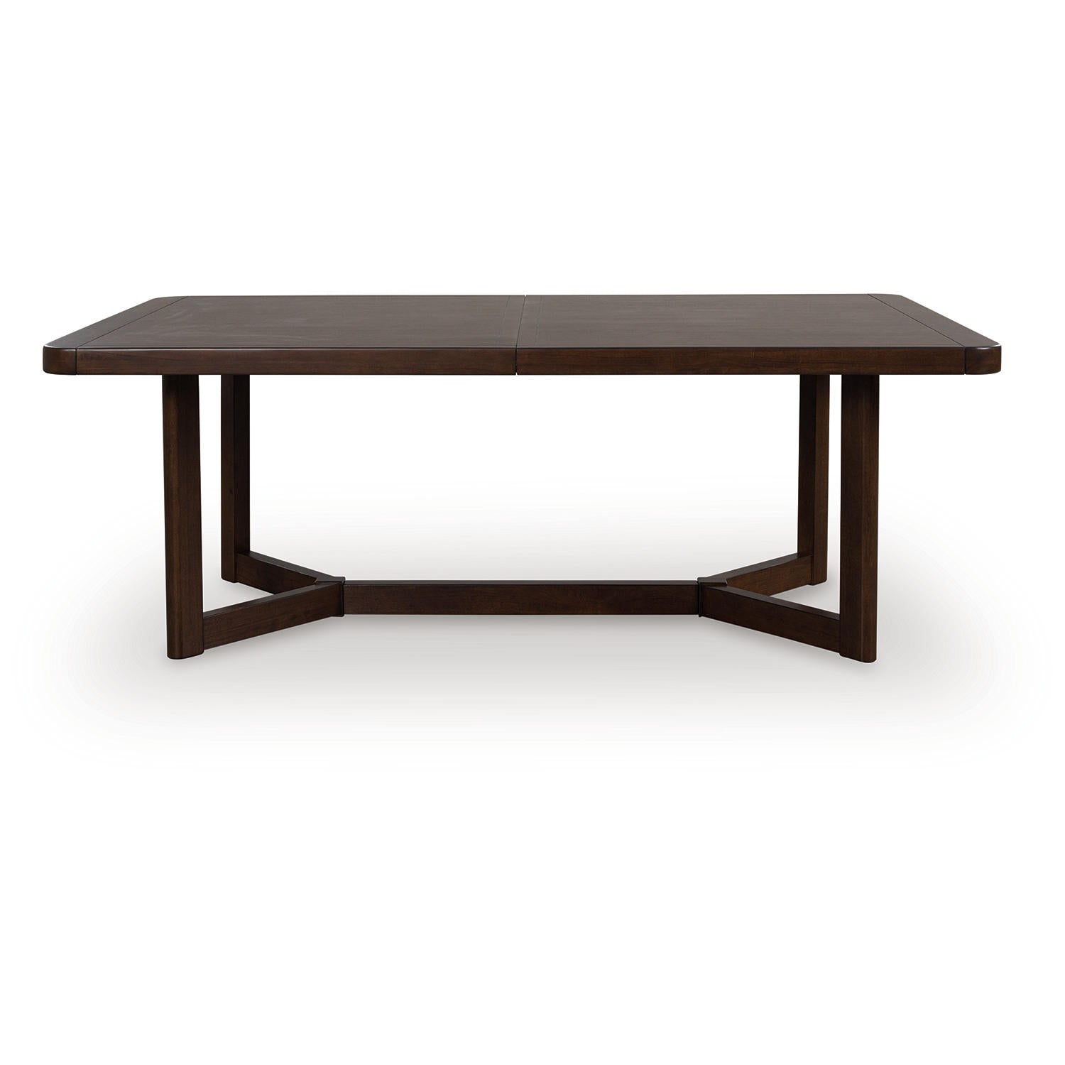 Casual contemporary styling with a decidedly modern vibe. This dining extension table dresses your dining spot in on-trend elegance with its rich warm brown finish. A softly rounded top frame and a fashionable double wishbone base beckon everyone to gather around. Now there’s a simply stunning show of great taste.