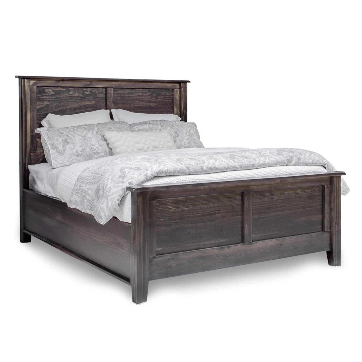 Enter the world of sophistication and comfort with the Harper Panel Bed. Each piece is meticulously crafted right here in Canada from fine solid wood and finished in a rich brown hue that exudes warmth and elegance.