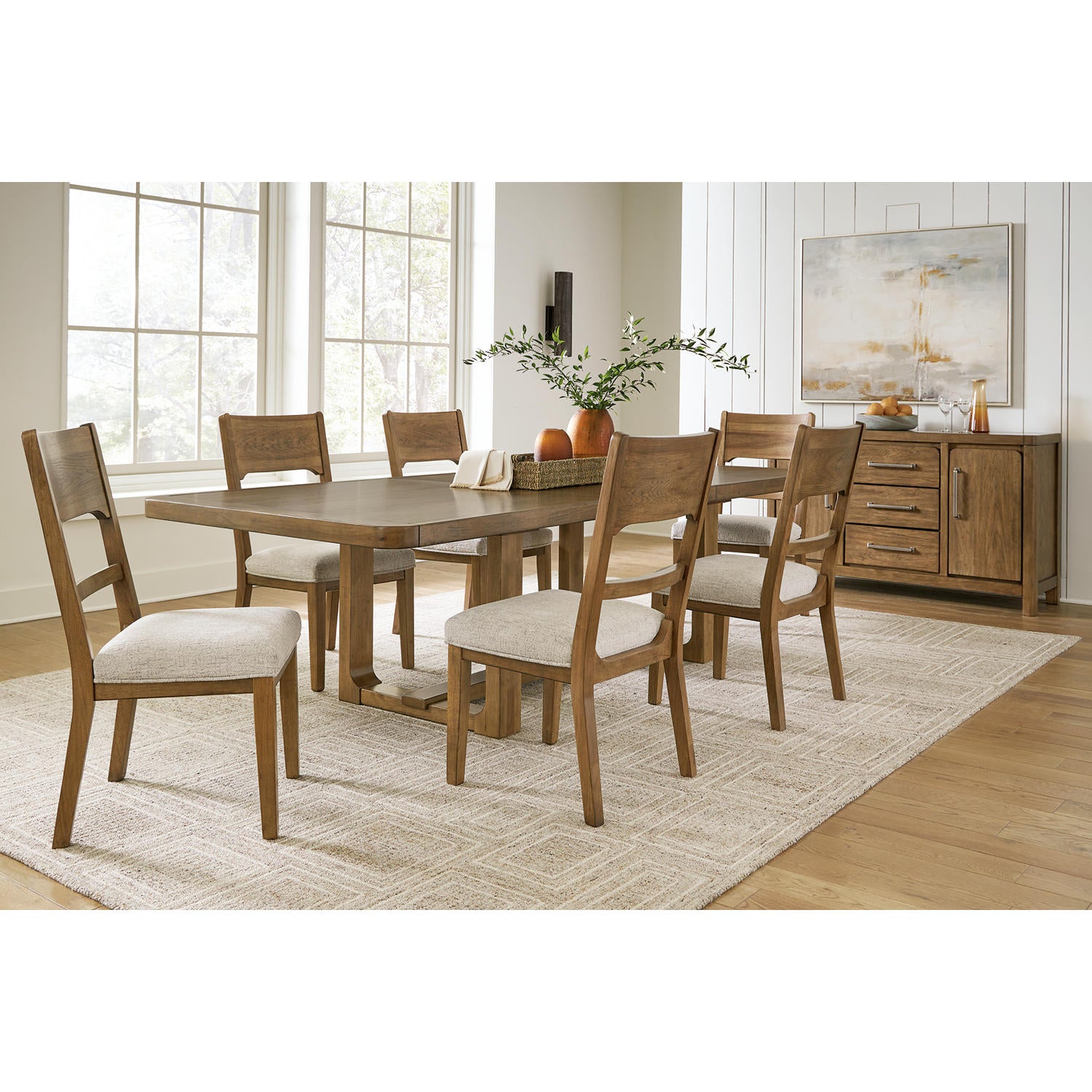 Define your dining room with reliable function and style. This dining server sits comfortably at the intersection of modern lodge and farmhouse aesthetics. Charming architectural elements and a light brown glazed finish reflect your warm and welcoming disposition. Even with its poise, it remains practical, serving up plenty of storage space in its dual cabinets and spacious drawers.