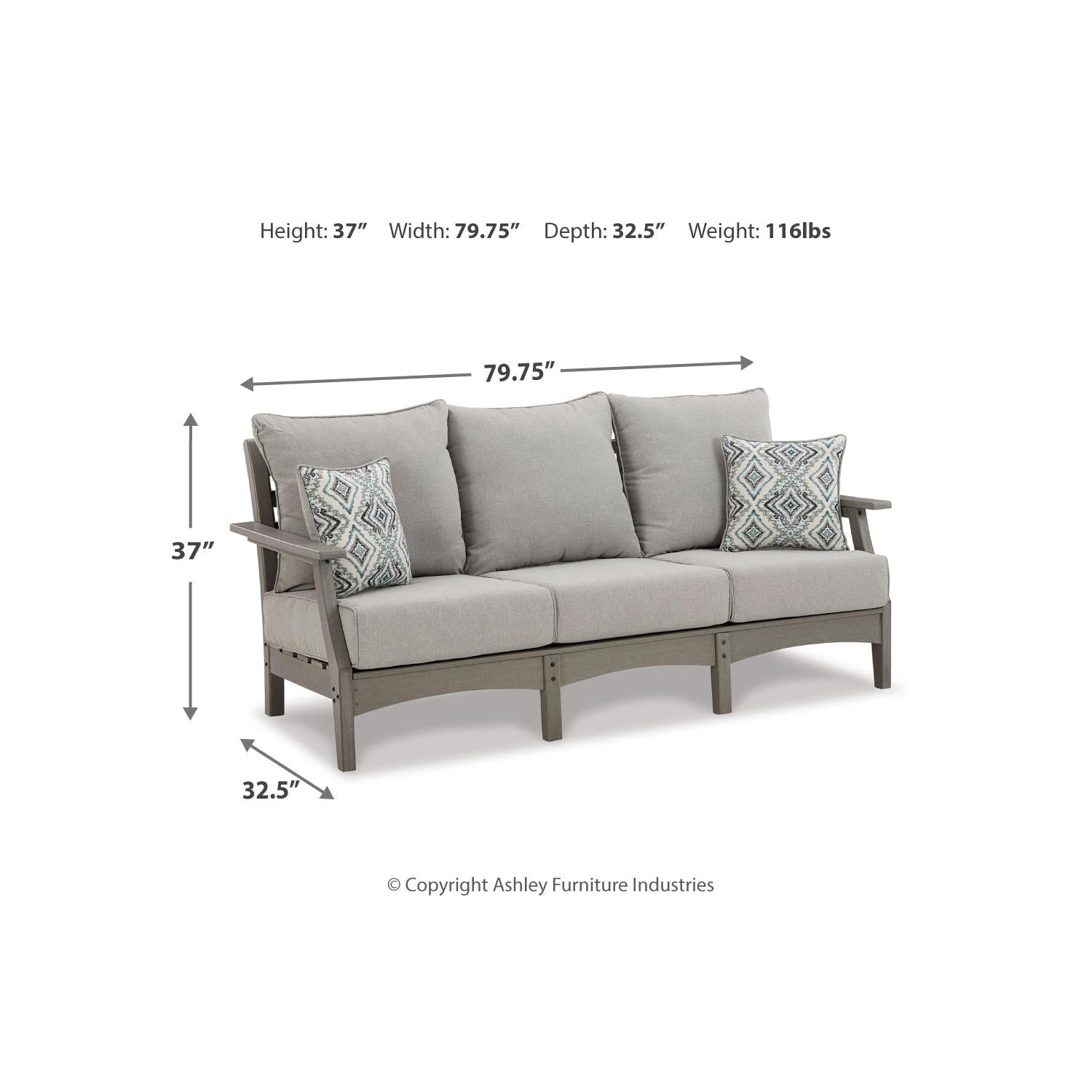 It’s the dawn of a new day for gray. Embrace the style trend with this outdoor sofa. Crafted of HDPE material that combines the exceptional durability and weather resistance you need with the “wood look” you love, this comfortably cushioned sofa takes outdoor living to a whole new level. Rest assured, the thick seat and back cushions and throw pillows are wrapped in our exclusive Nuvella® high-performance fabric that’s fade resistant, stain resistant and a breeze to clean.