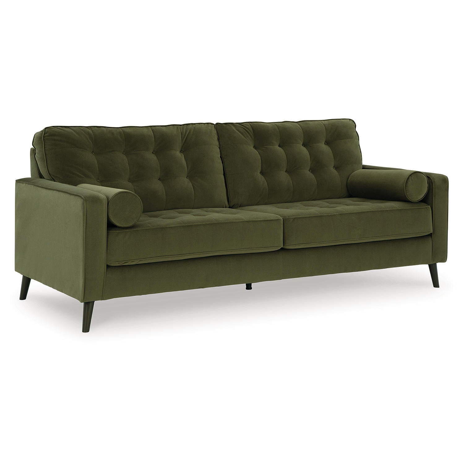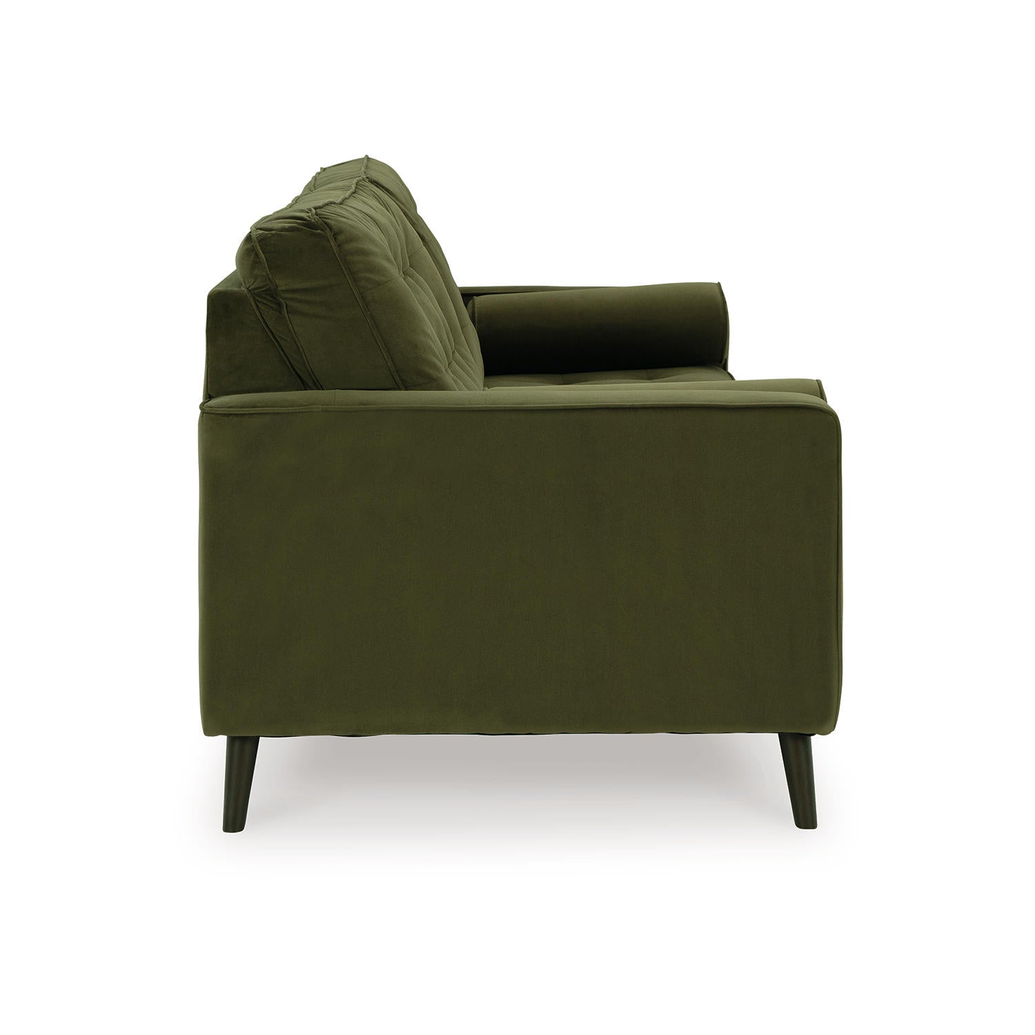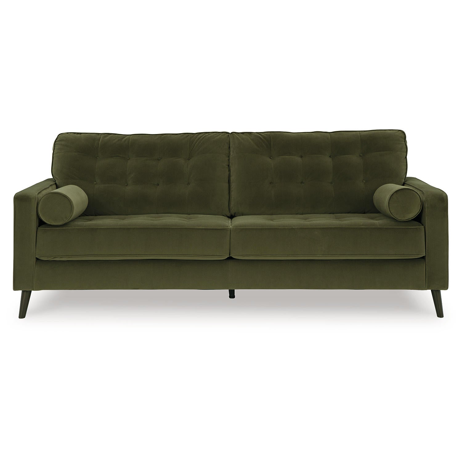 This sofa strikes the perfect balance between elevated and eclectic. Contemporary lines and a richly hued velvet upholstery keep things chic. Design details like button tufting and splay legs add mod flair. It’s sure to keep your living room luxuriously on trend—at a price that won’t break the bank.