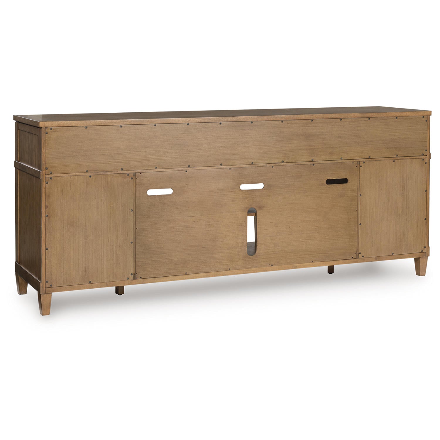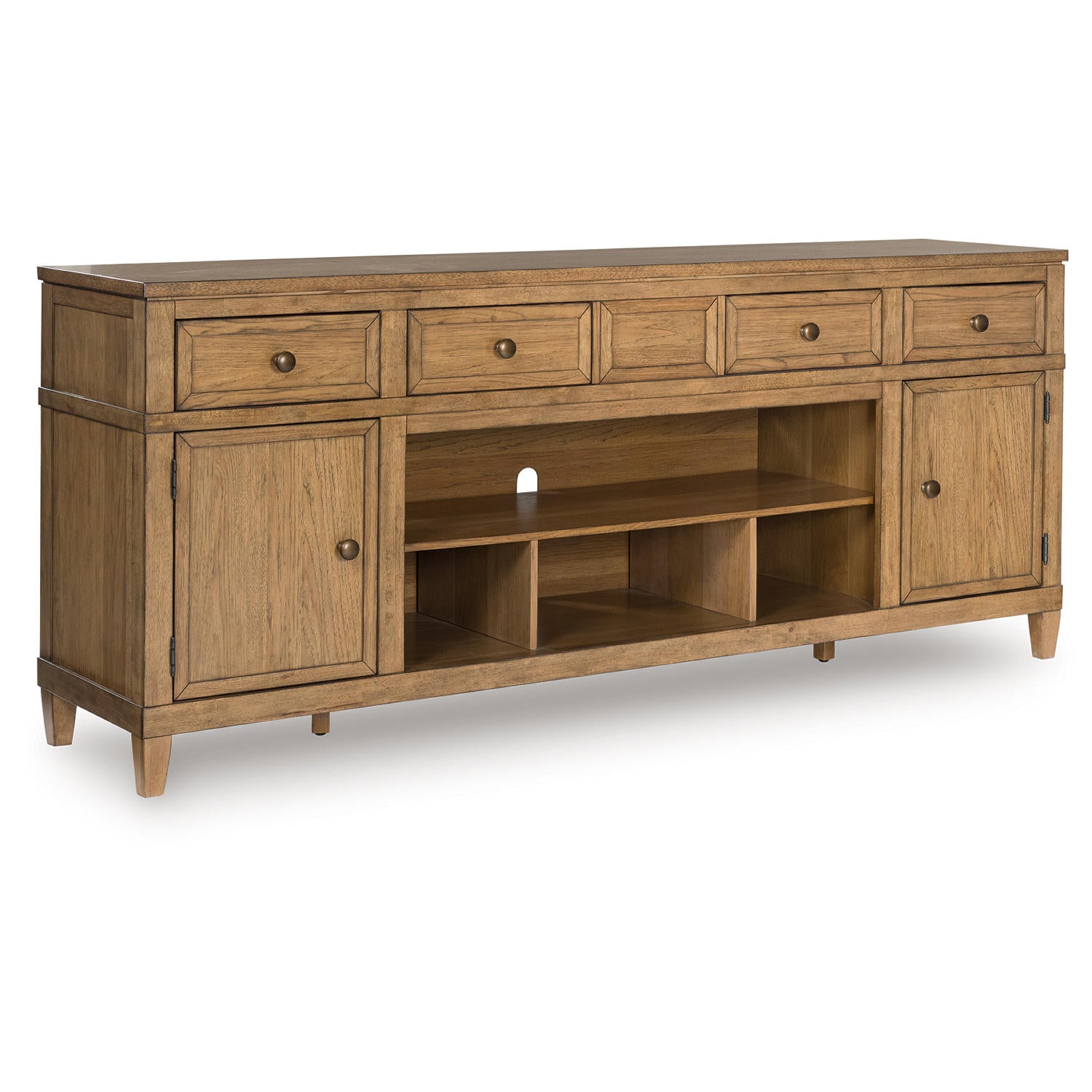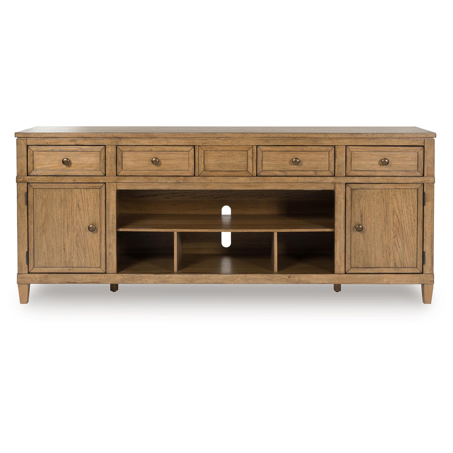 Taking a timeless approach to casual beauty, this TV stand brings easygoing elegance to the everyday. The light brown wood-tone finish seamlessly slips into your room’s aesthetic. Two spacious cabinets (each with an adjustable shelf), four drawers and an open center shelf offer plenty of storage for media and electronics. Enhancing the experience: the optional fireplace insert (sold separately) brings a touch of warmth and beautiful ambiance to your living room.