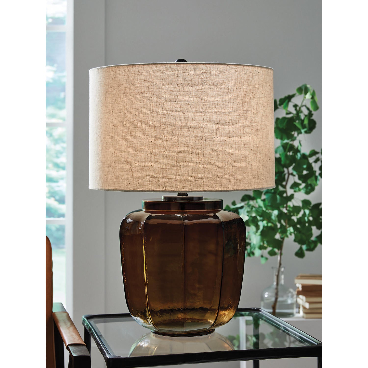 Simply elegant. This table lamp brings classic form and function to casual spaces. With an understated design and a handsome amber hue, it pairs seamlessly with existing decorative pieces. Place this lamp on an accent table for a touch of soft lighting and inviting style.