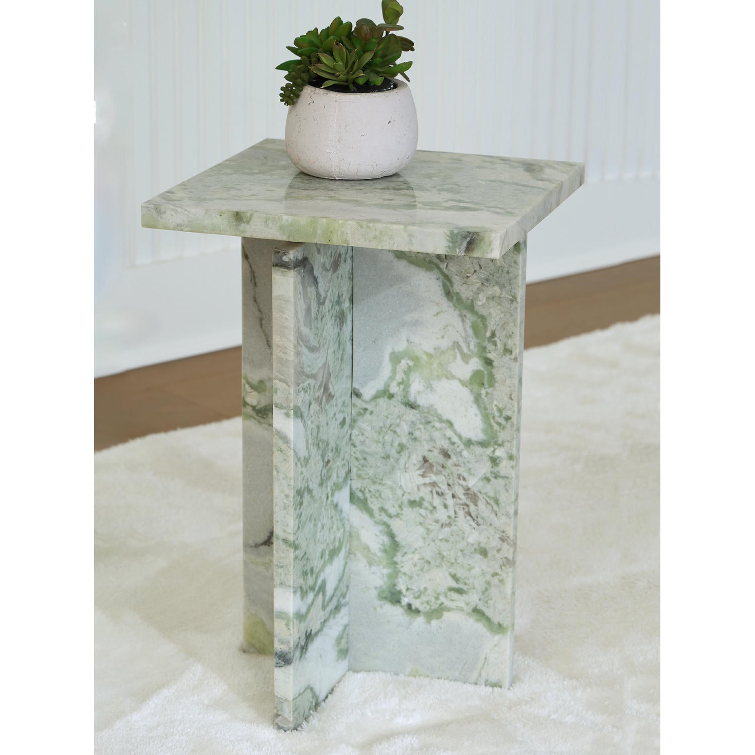 Elevate your space with exquisite natural beauty. With its sleek design and unique green veining, this marble accent table is a standout piece that effortlessly blends with contemporary decor. Perfect for placing next to your couch or bed, the functional and stylish table is ideal for holding your favorite book or a cup of coffee.