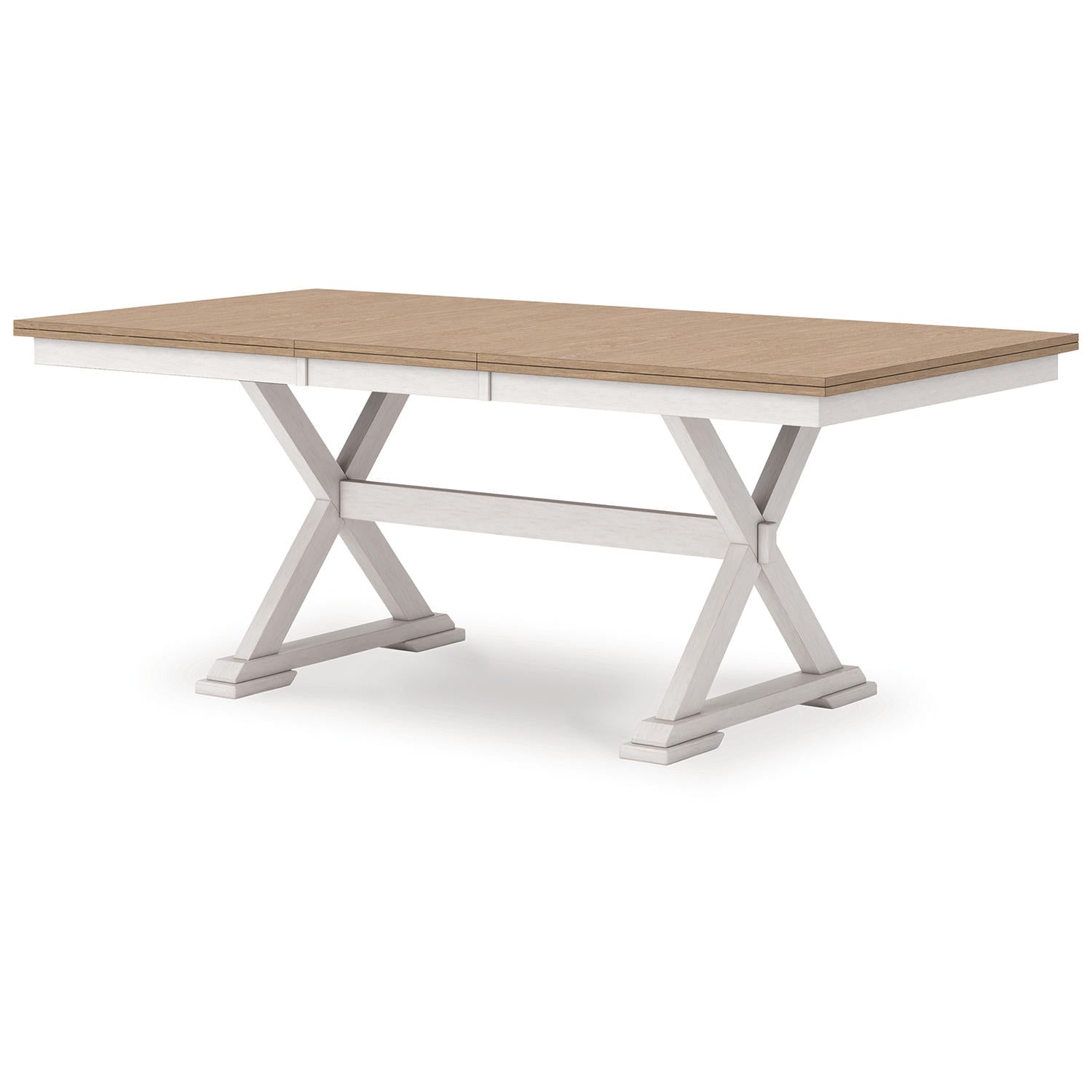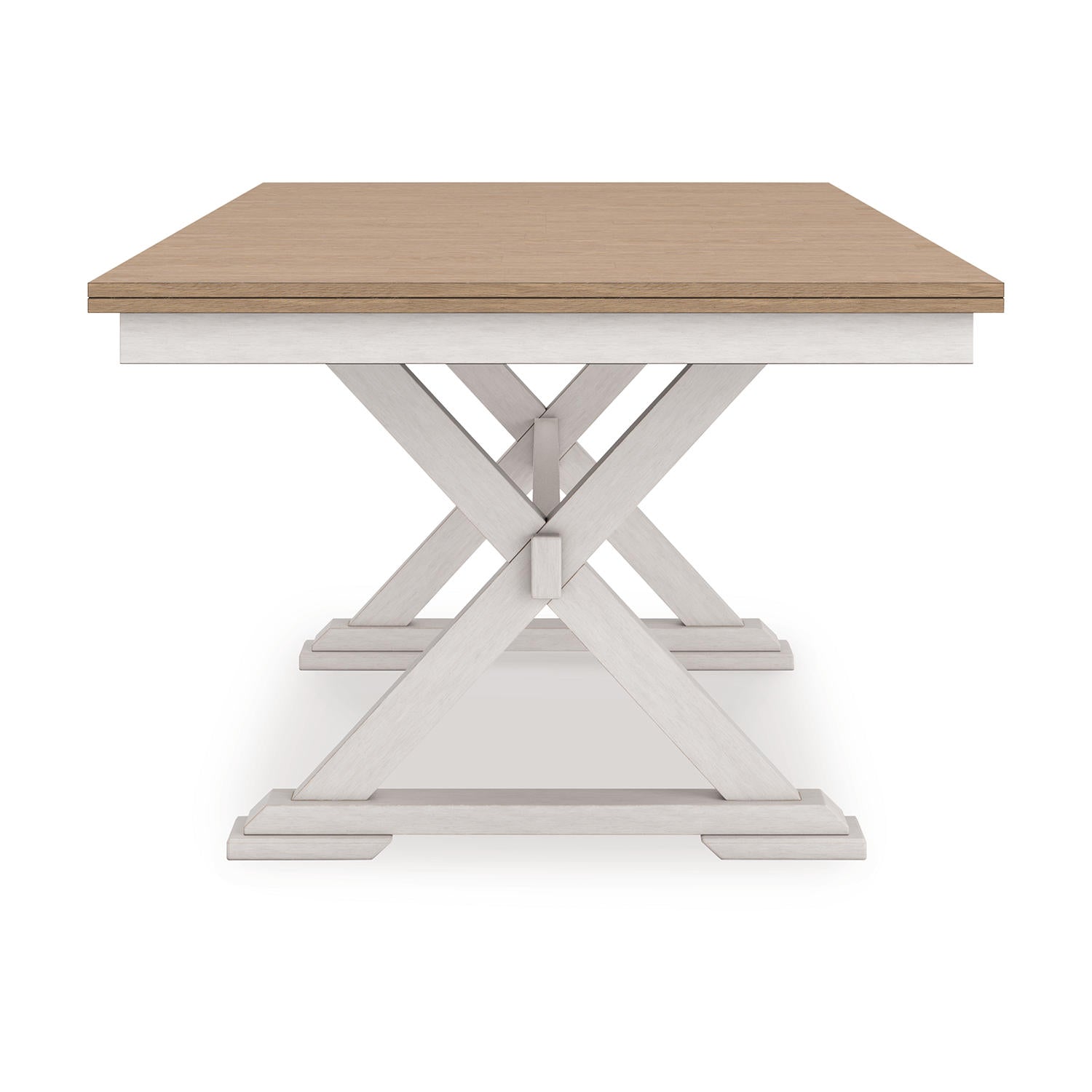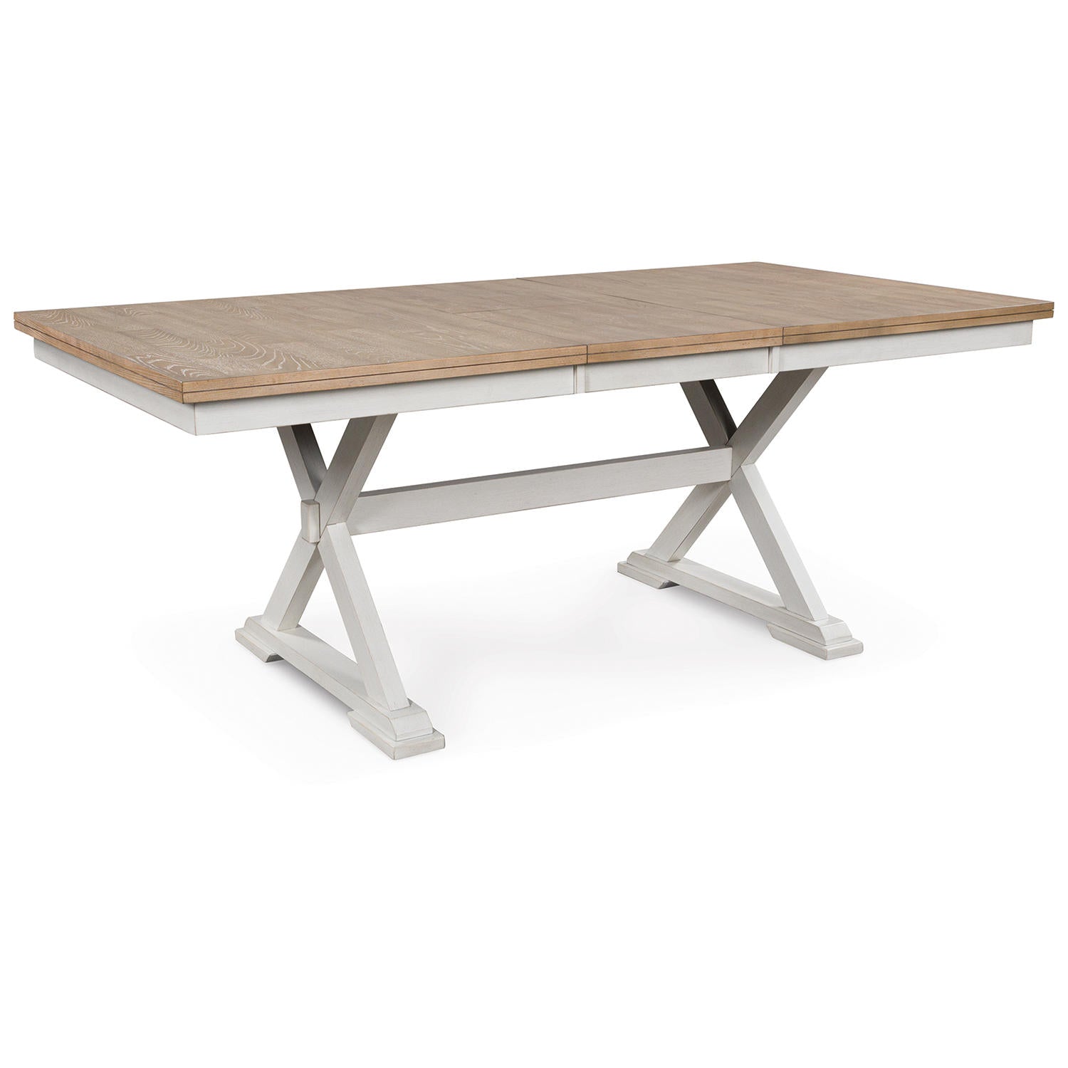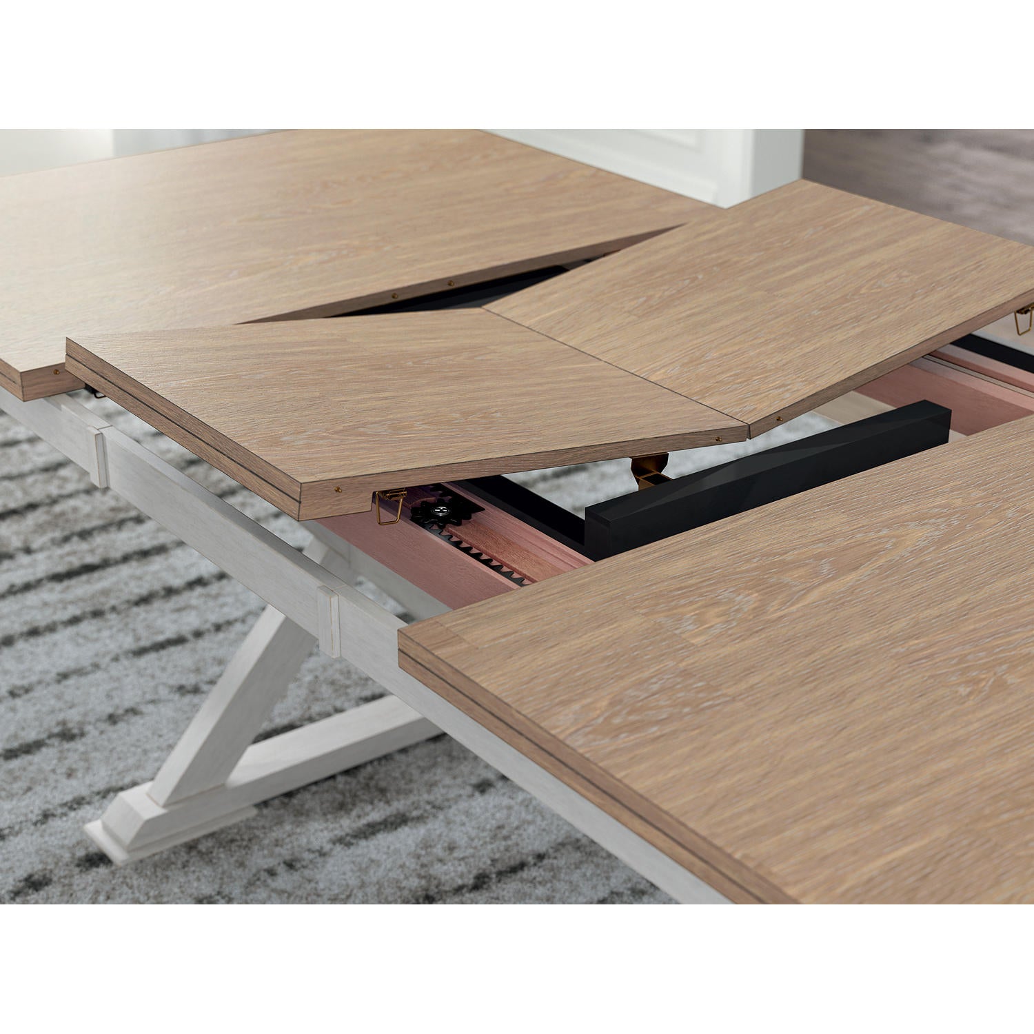 Busy breakfasts and family dinners get a dose of modern farmhouse flair with this dining extension table. Its two-tone finish contrasts a light butcher block hue with an antiqued white base for an utterly charming effect. Effortlessly chic, it includes a butterfly extension leaf so more guests can gather at the table.