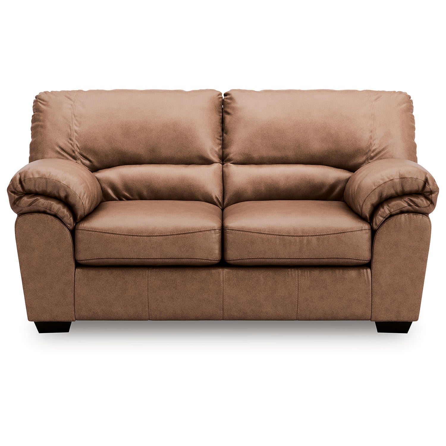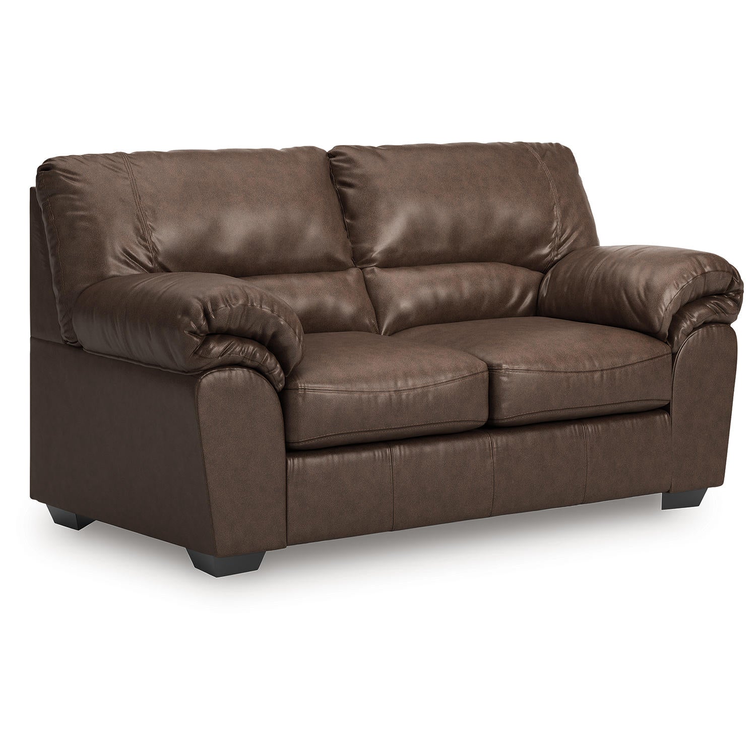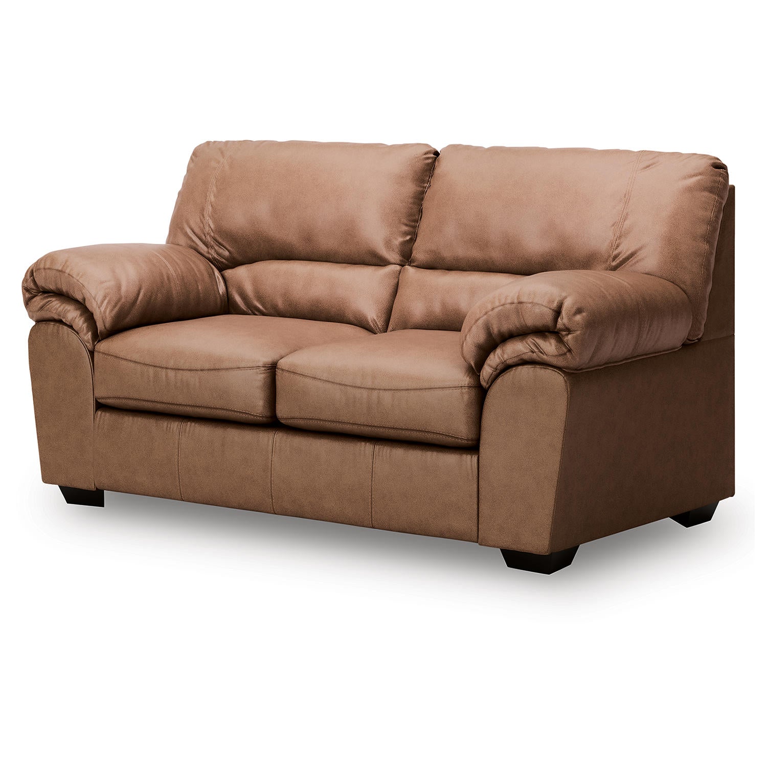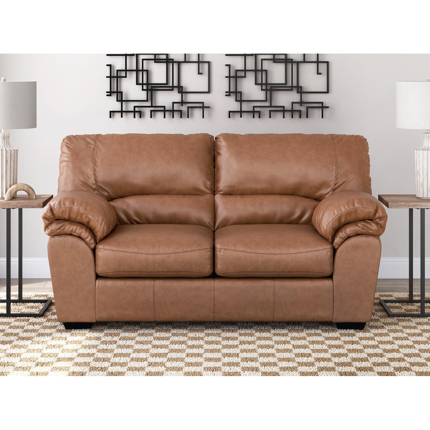 Modern comfort never looked so good. Sporting supremely soft yet durable cushions accented with high-fashion jumbo stitching, this stunning loveseat is the ultimate choice in comfortably cool, contemporary style. Its umber-hued faux leather indulges with an upscale feel and wows like the real thing.