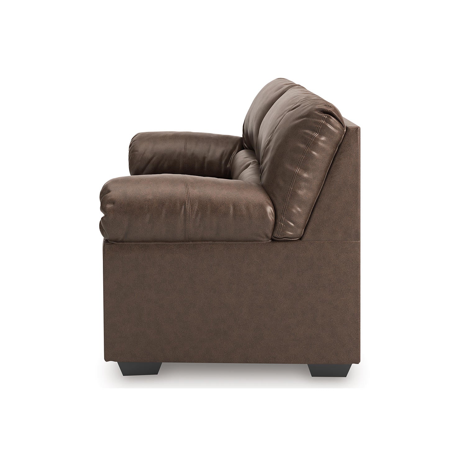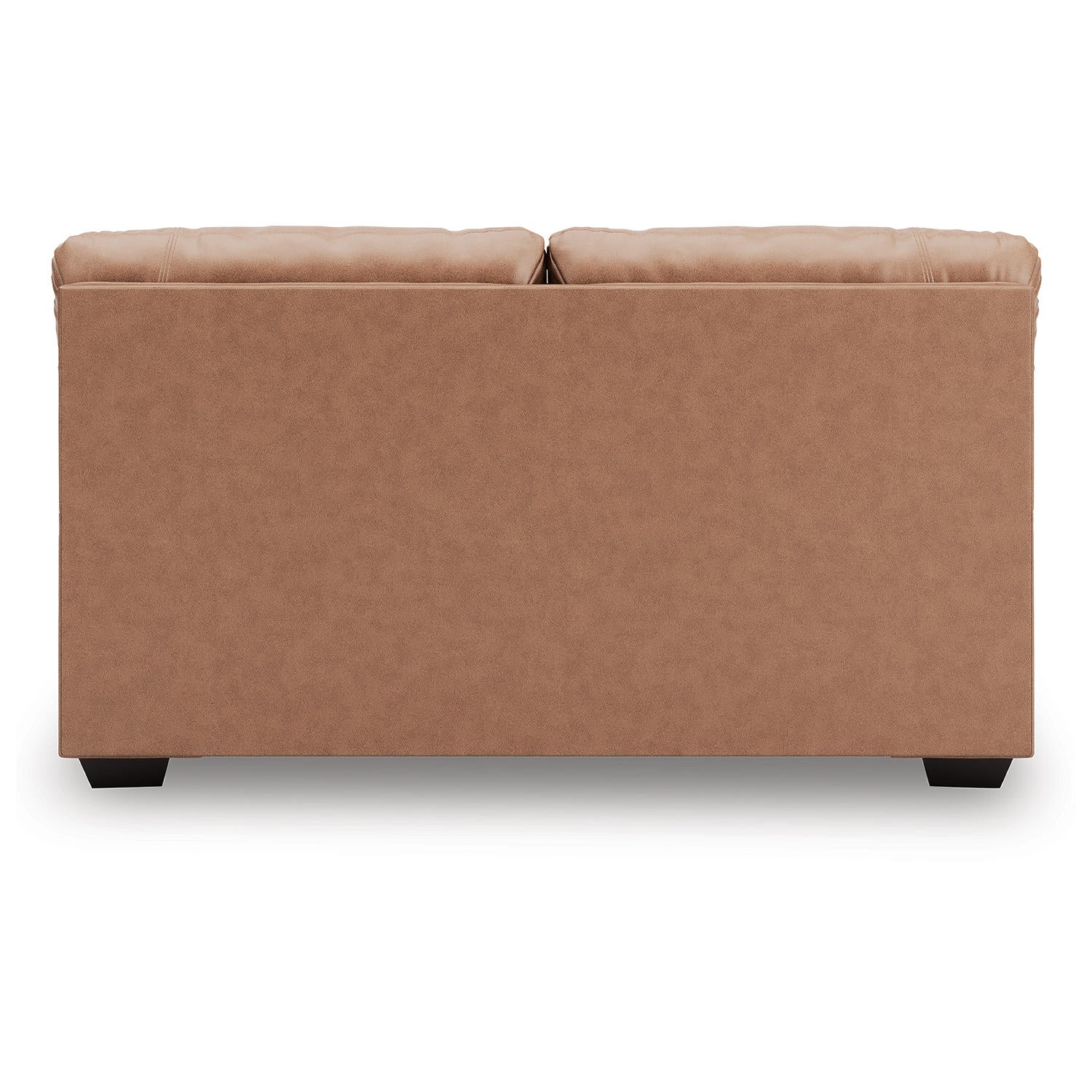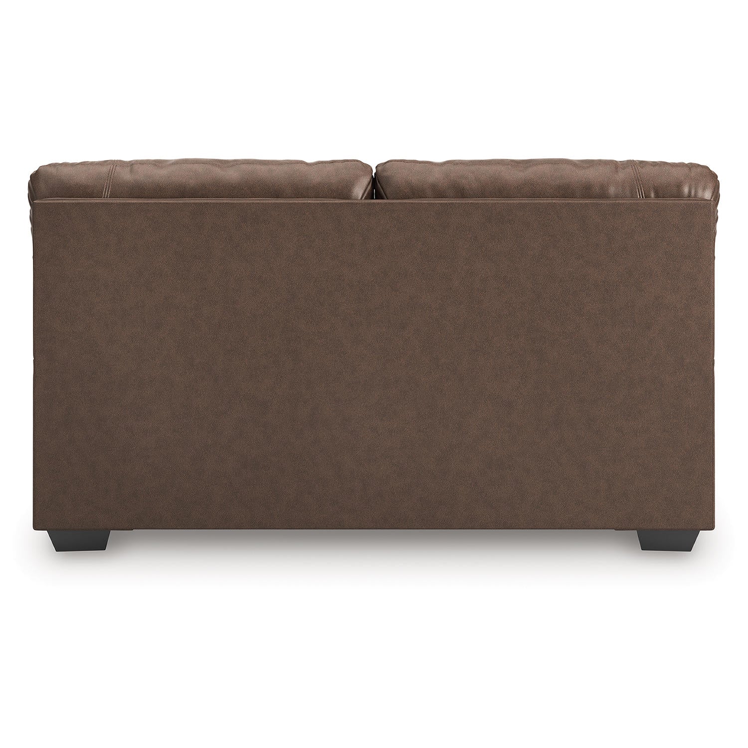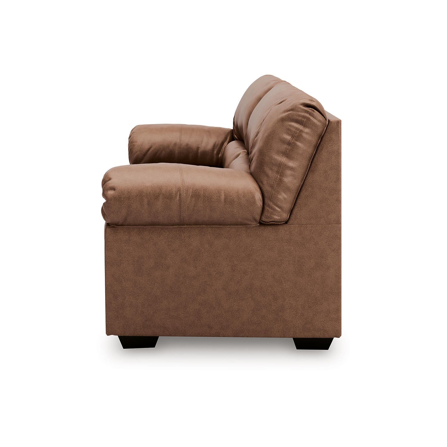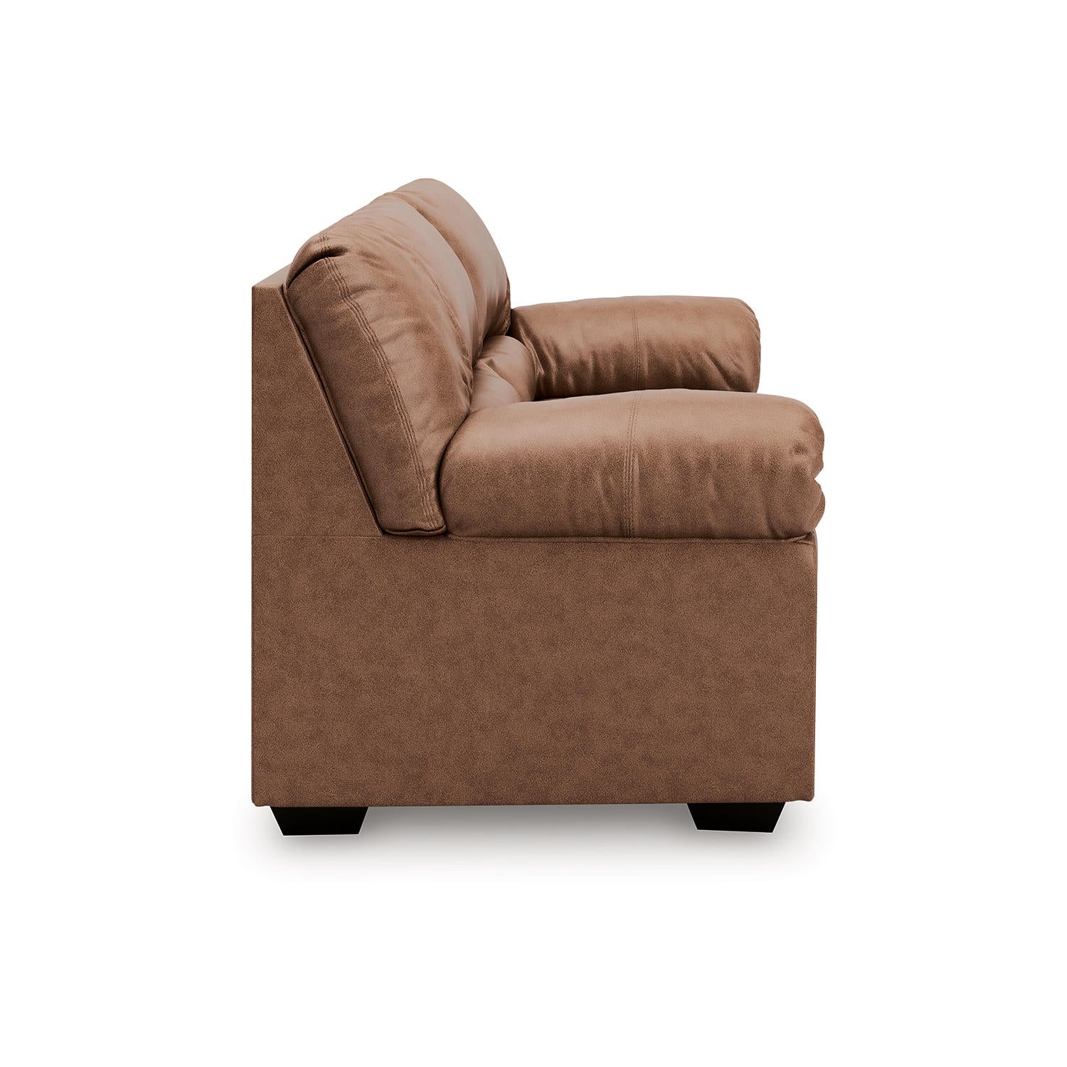 Modern comfort never looked so good. Sporting supremely soft yet durable cushions accented with high-fashion jumbo stitching, this stunning loveseat is the ultimate choice in comfortably cool, contemporary style. Its umber-hued faux leather indulges with an upscale feel and wows like the real thing.